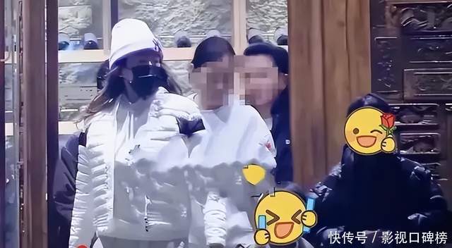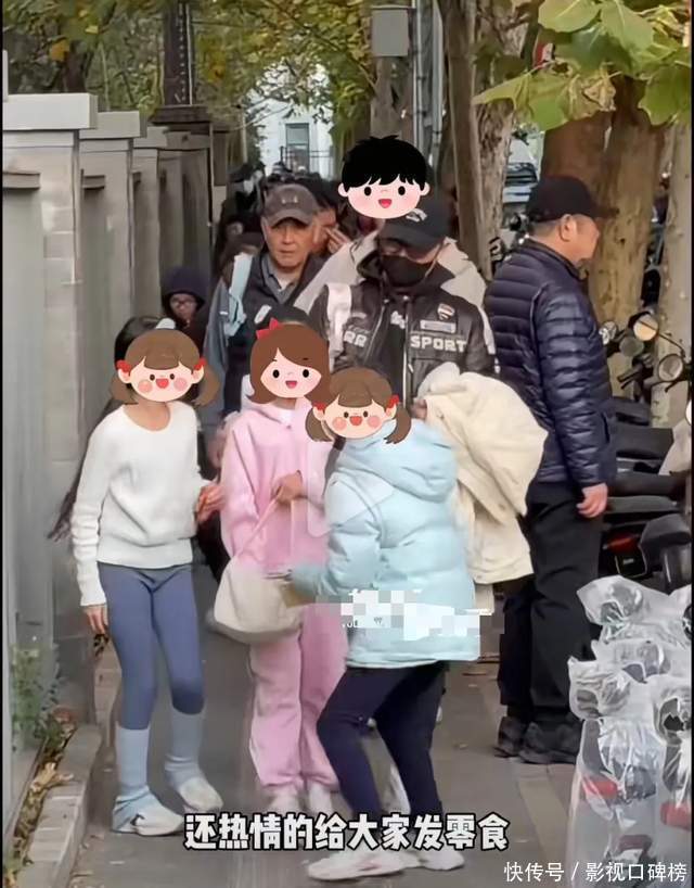 11月17日有网友拍摄到,章子怡带着一对儿女外吃烤的画面。离开时,一行人走出来。
