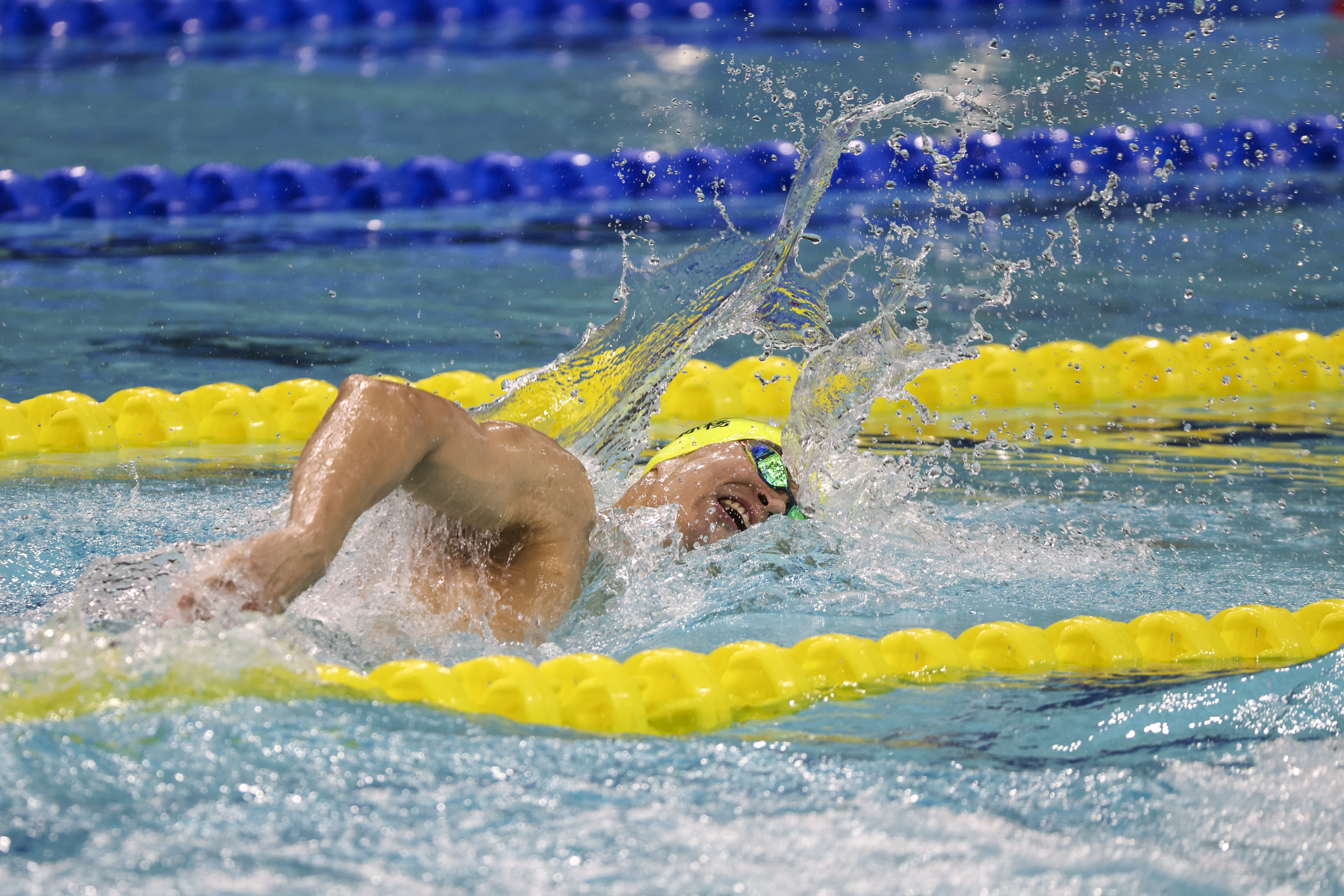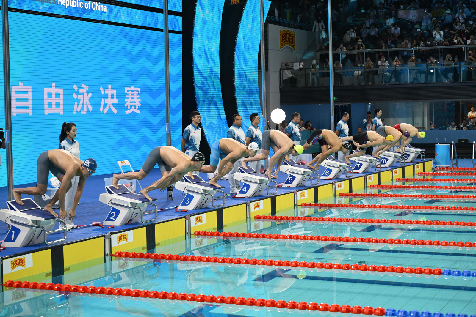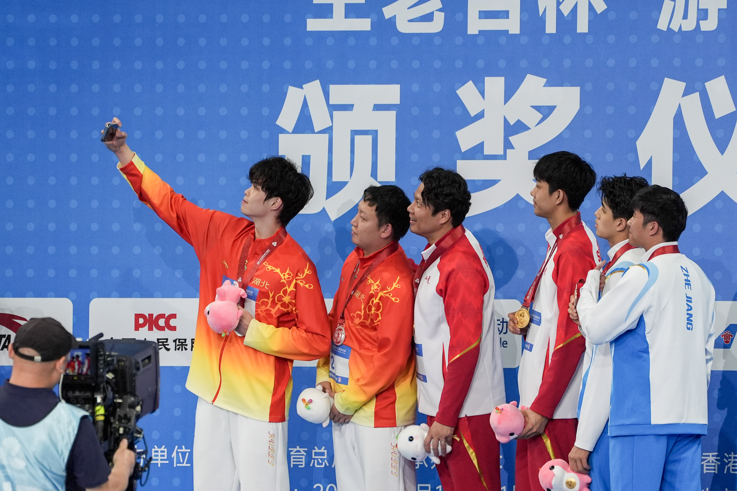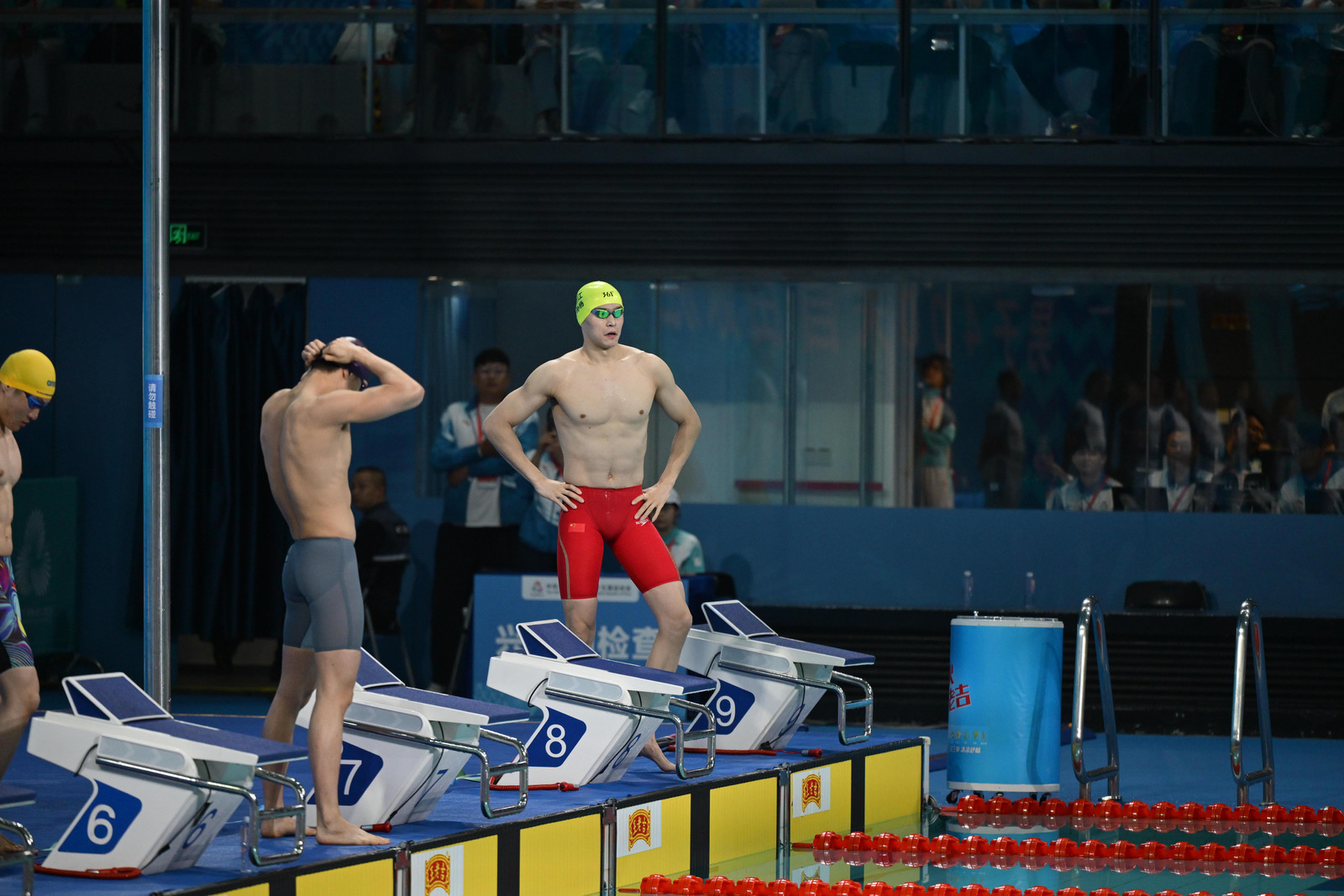 11月10日,第十五届全国运动会游泳男子400米自由泳决赛在深圳大运中心游泳馆举行。来自山东的18岁小将张展硕以3分42秒82的成绩获得冠军,同时刷新世界青年纪录。湖北选手徐海博获得亚军。浙江队三位选手费立纬、潘展乐、孙杨分别获得第三名、第五名、第六名。
