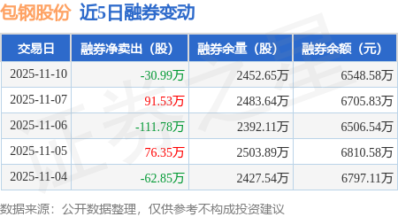 本站消息,11月10日,包钢股份(600010)融资买入2.77亿元,融资偿还3.59亿元,融资净卖出8173.58万元,融资余额26.7亿元。