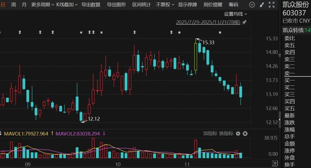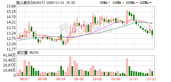 2025年前三季度,凯众股份实现营收5.64亿元,净利润5829万元。截至11月21日收盘,凯众股份股价13.08元/股,总市值34.87亿元。