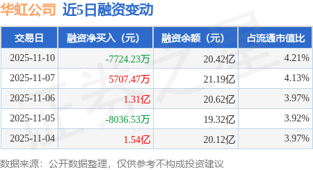 本站消息,11月10日,华虹公司(688347)融资买入3.09亿元,融资偿还3.86亿元,融资净卖出7724.23万元,融资余额20.42亿元。